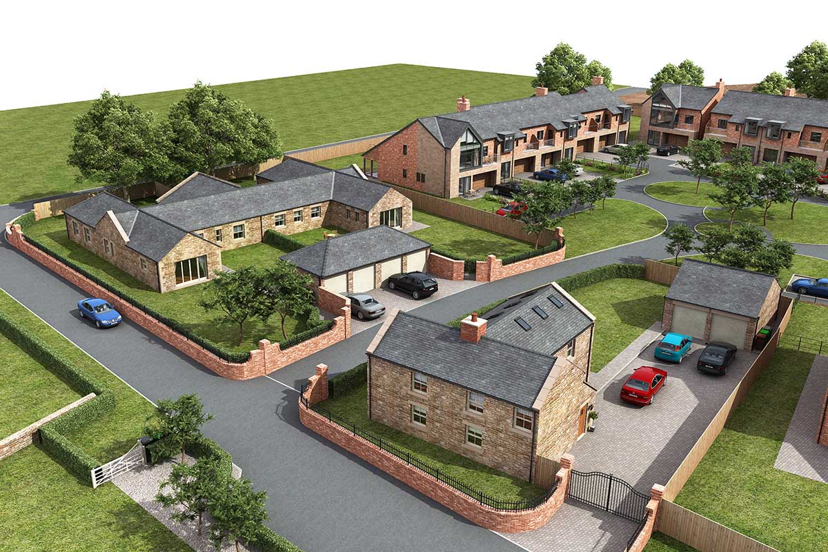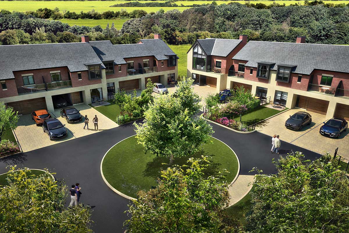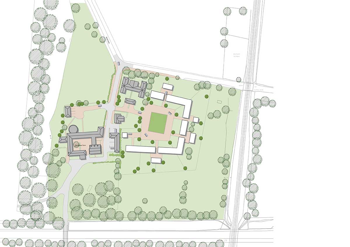 Enabling proposals allowed 19 new build dwellings arranged in a courtyard form on previously green belt land allowing a capital receipt to bring a heritage asset back to life. Originally conceived as one large detached residence, subsequent proposals divided the complex into 4 linked dwellings.