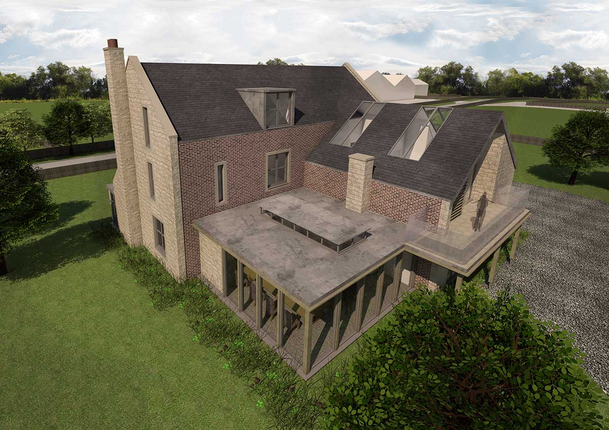 The scheme, confined to this footprint, allows for some exciting opportunities. The entrance hall is awash with natural light flowing through a the triple height void, permeating into spaces such as a cantilevered reading space. Large openings offer uninterrupted views over the surrounding countryside whilst creating light open spaces with a direct connection to the landscape.
