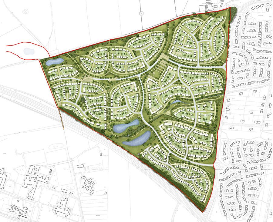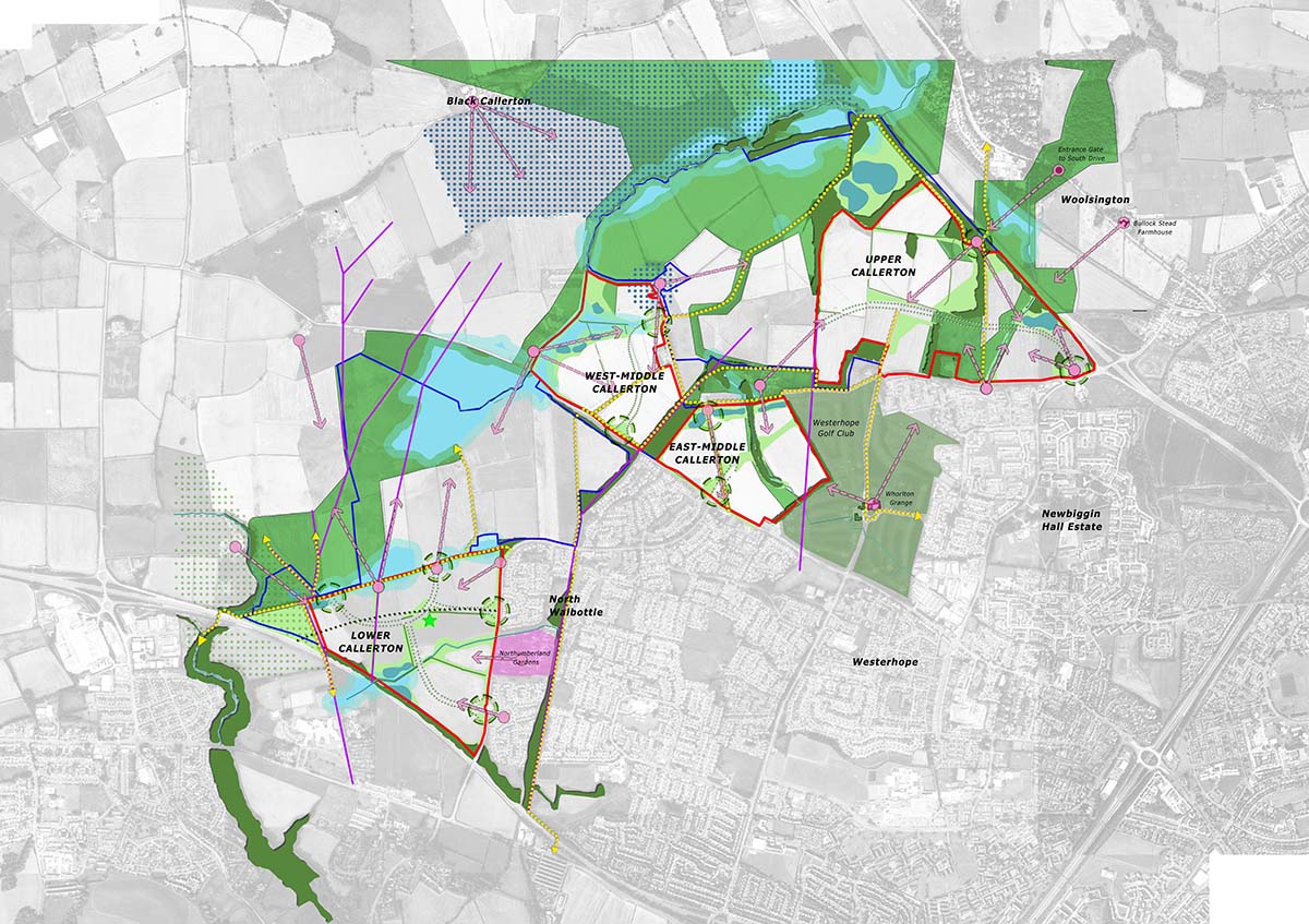 Pod were initially engaged to prepare a concept masterplan and visioning document suitable to achieve the allocation of the development site, with the aspiration to provide for a Lower, Middle and Upper Callerton ‘Village’, with each area responding to individual development constraints and site context. Pod subsequently prepared a design code adopted by the local authority, allowing a number of smaller detailed, hybrid and outline applications to be delivered as part of an agreed holistic masterplan framework.