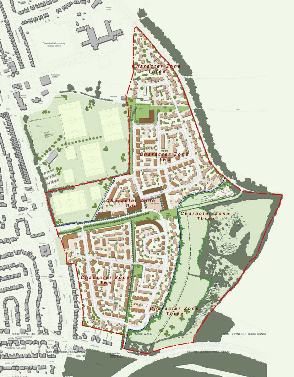 A development of 330 dwellings, including a 51 unit apartment hybrid care scheme, with planning permission secured through Public Enquiry. Key development considerations include integration of existing landscape features, including ensuring re-hydration of fen areas to the eastern boundary. A driver of design was to promote and enhance pedestrian connectivity through the site with historic Waggonways and connections to the Weetslade Country Park. The design of the Hybrid unit, a sheltered accommodation block with the ability to convert to an extra care facility, was formulated and designed in conjunction with North Tyneside Council. In regard to character, Pod worked closely with the council’s urban design officer to achieve a contextual, bespoke housetype range, which is reflective of Victorian properties located near to the scheme.