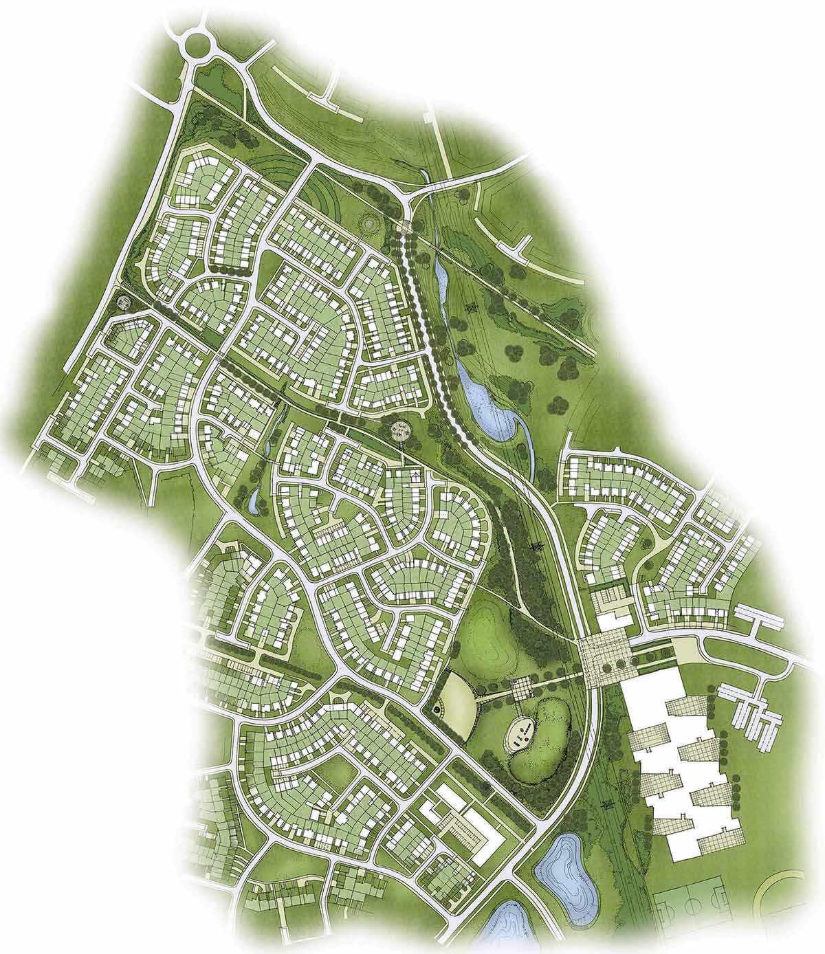 Post allocation, pod are working on a number of detailed and outline applications to ensure development proposals accord fully with the core tenets of the masterplan vision. Key development considerations include providing a meaningful village centre, successful integration of existing and proposed landscaping and the translation of the potential constraints into defined development opportunities. A cohesive edge study will ensure a considered response to existing housing, respectful of both privacy and amenity.
