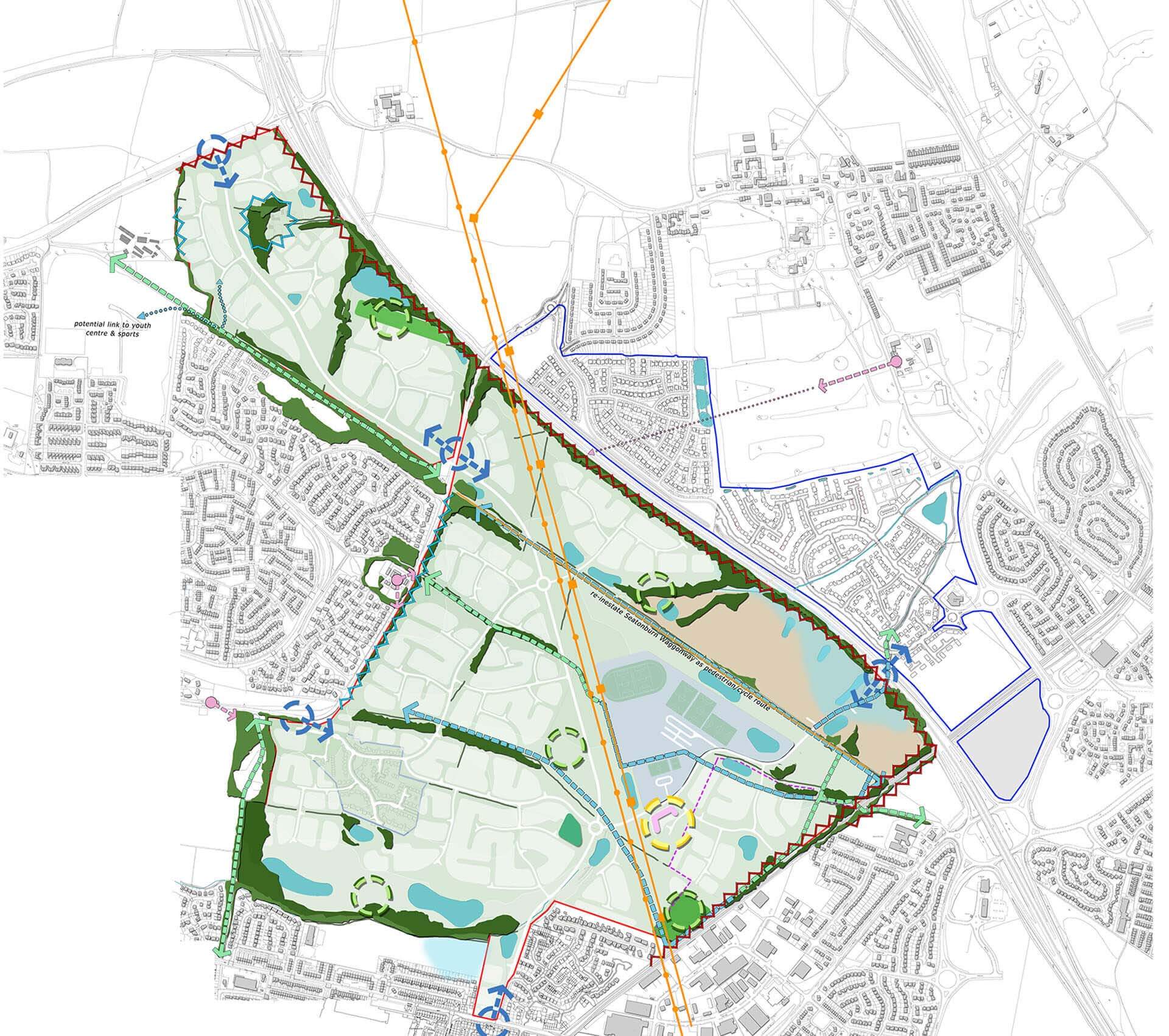 Killingworth Moor forms a key strategic allocation of the emerging North Tyneside Local Plan providing approximately 2000 homes, a new secondary school in addition to both commercial and industrial development. Pod were initially instructed by the development consortia to provide promotional and visioning material and to ensure masterplan proposals were progressed with key stakeholders including North Tyneside Council and ATLAS ( The Advisory Team for Large Applications).