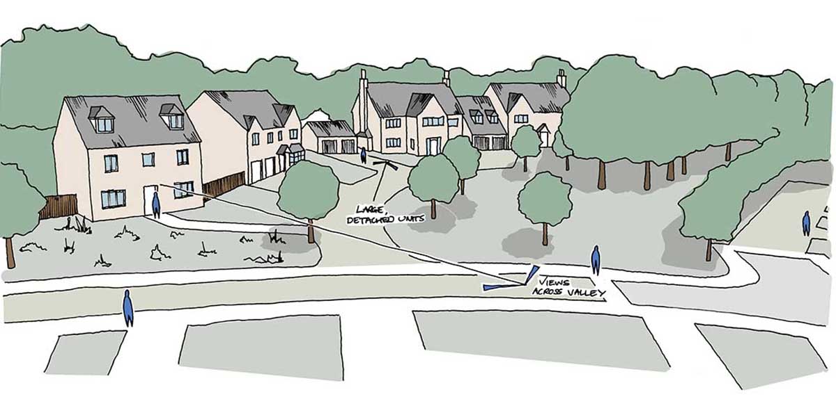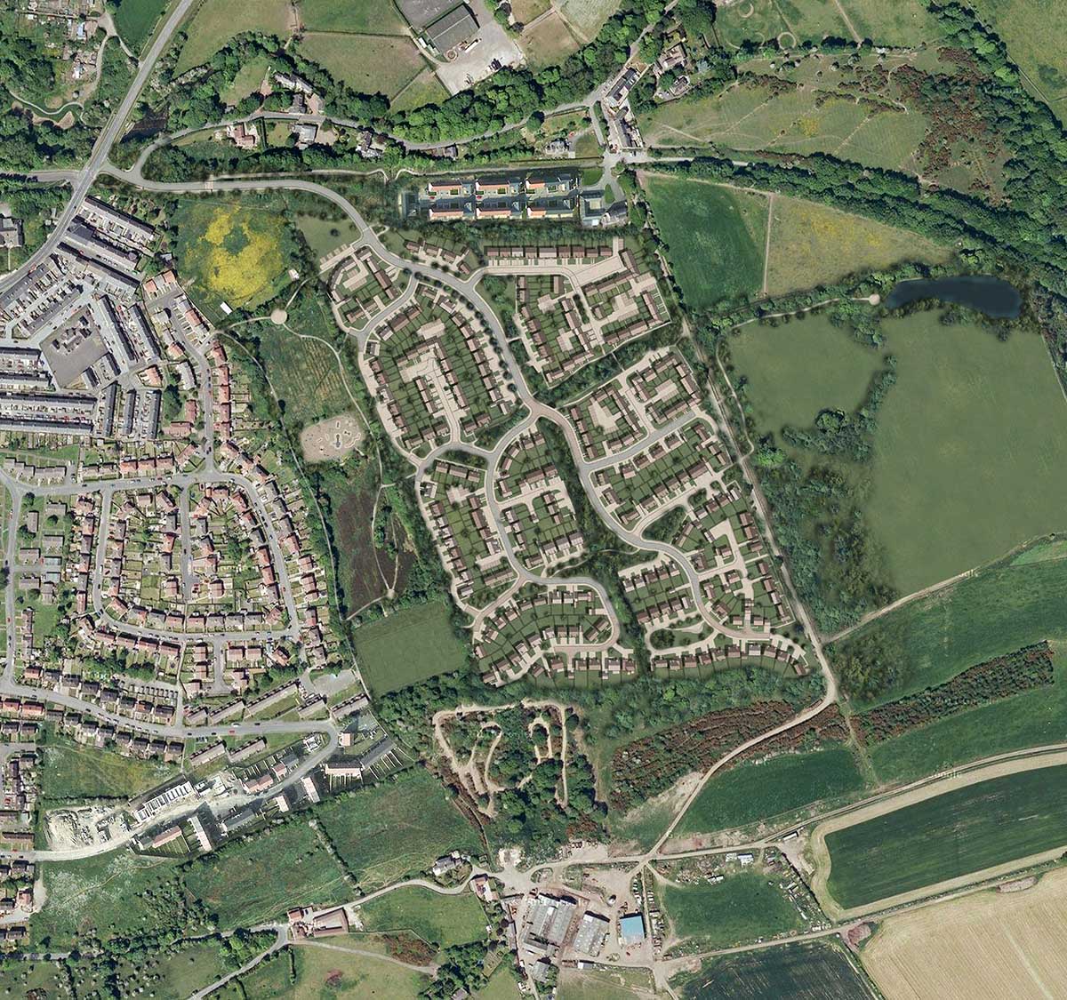 Pod were instructed to prepare masterplan proposals and supporting information to underpin a 400 dwelling outline application. The scheme looks to incorporate existing landscaping within the scheme as a key driver of design. The retained mature landscape belts divide the site into smaller development cells with each area having a distinct character. The topography of the site has also served to inform the scheme, with larger detached dwellings located to the southern boundary of the site orientated to take advantage of expansive long rage views. Subsequent planning applications are focused on the delivery of the scheme.