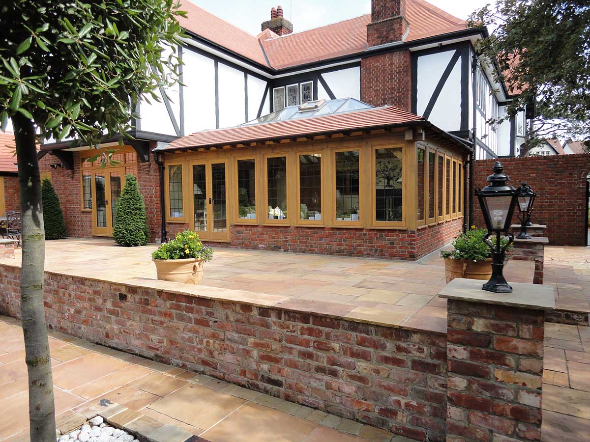 The development brief from the client was to undertake a complete refurbishment and remodelling of the entire property. Although the existing building had presence and character, it was felt that the rear elevation lacked presence and did not maximise views over the generous rear garden. Subsequent extensions to the property at both ground and first floor have provided both aesthetic and spatial quality to the residence. The inclusion of a large green frame oak orangery leading to an open plan kitchen dining area ensure the property now connects to the landscape garden. First floor additions have allowed large bathrooms and dressing room areas, in addition to a new heated garage block. The inclusion of bespoke designed entrance gates and new boundary wall provide security and a consistency of design approach.