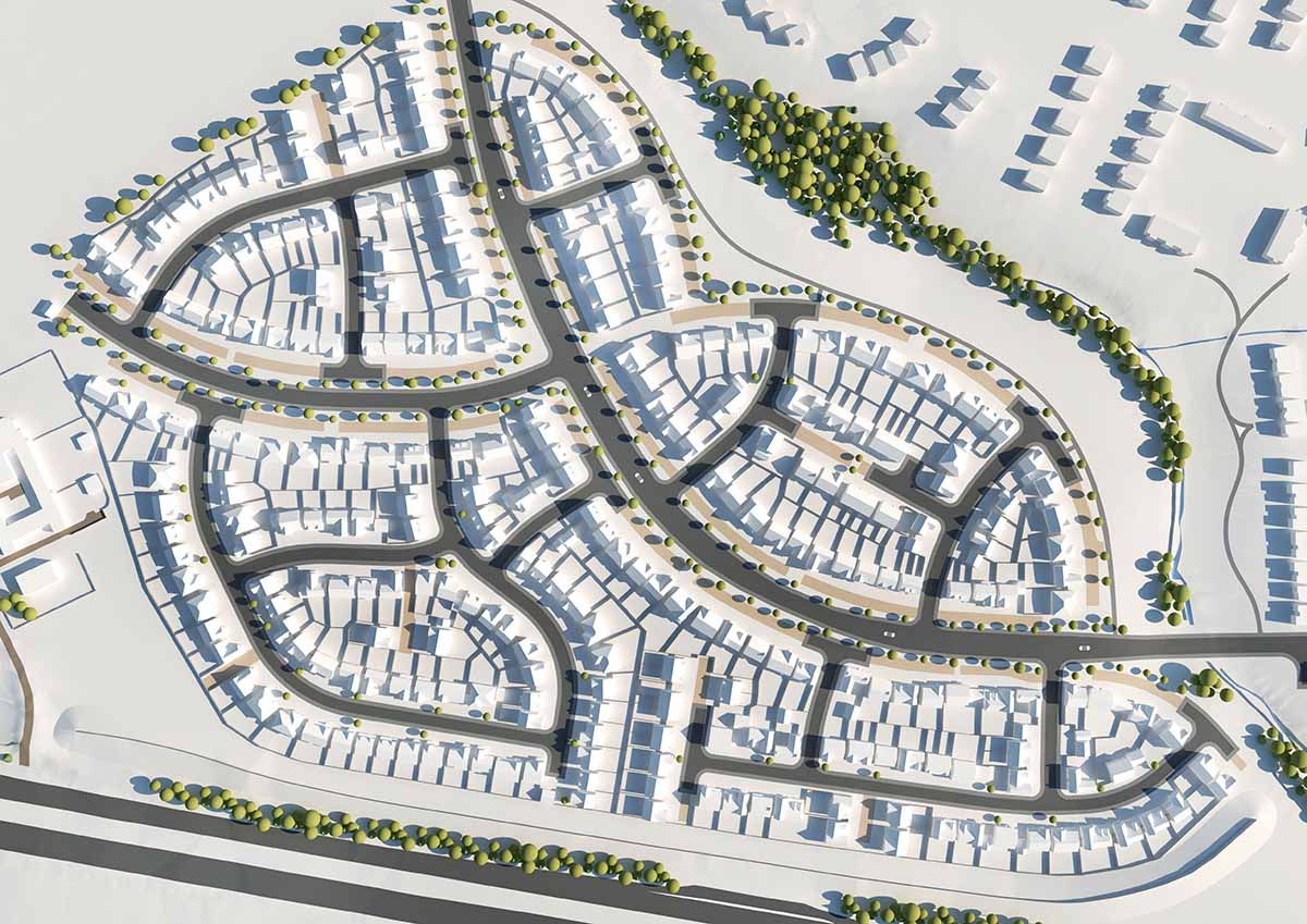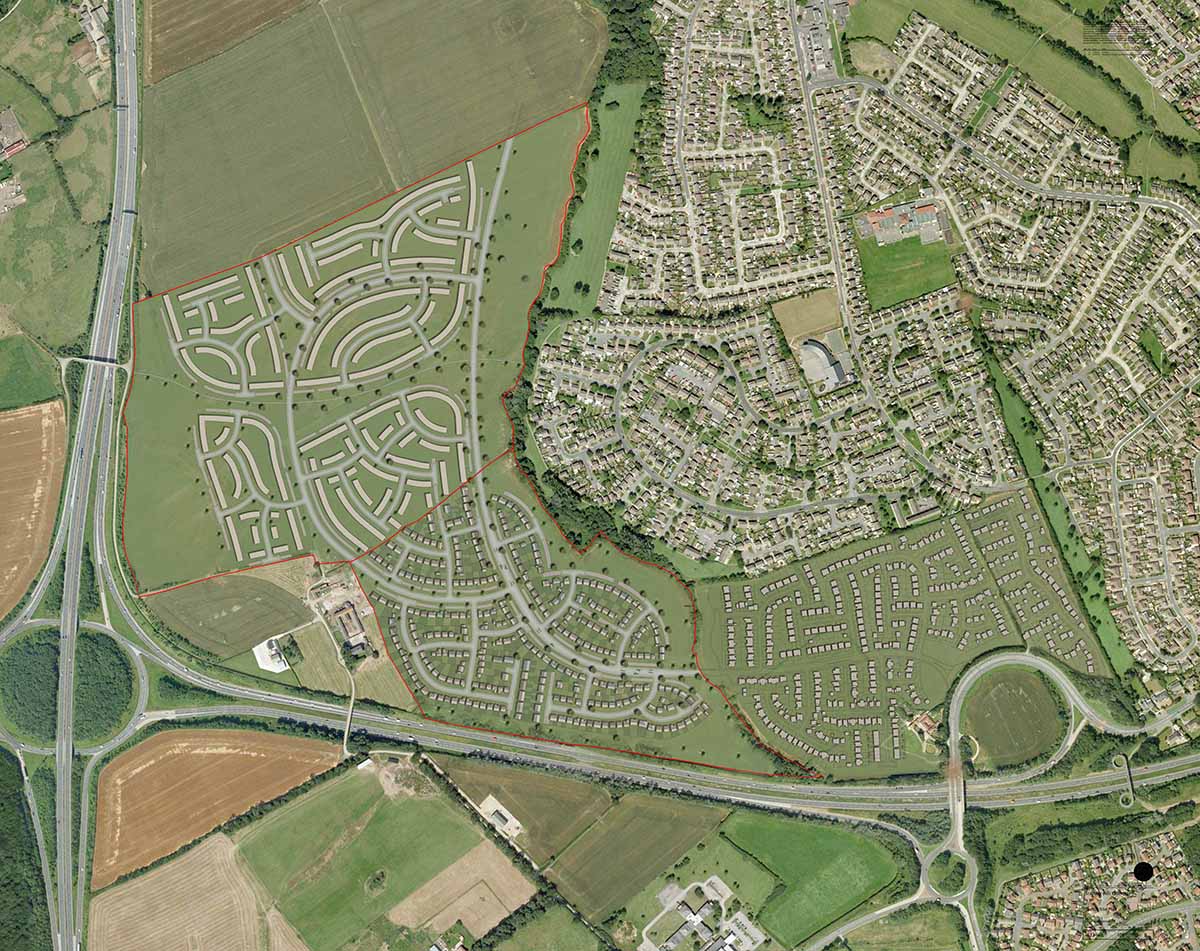 Pod have been engaged by a number of clients to aid realisation of Stainsby hall Farm, a major urban extension to the south Middlesbrough area, totalling 900 new homes. Conceived as providing predominantly low-density family homes, with the primary ‘boulevard’ route through development envisaged to connect north to the A1130.