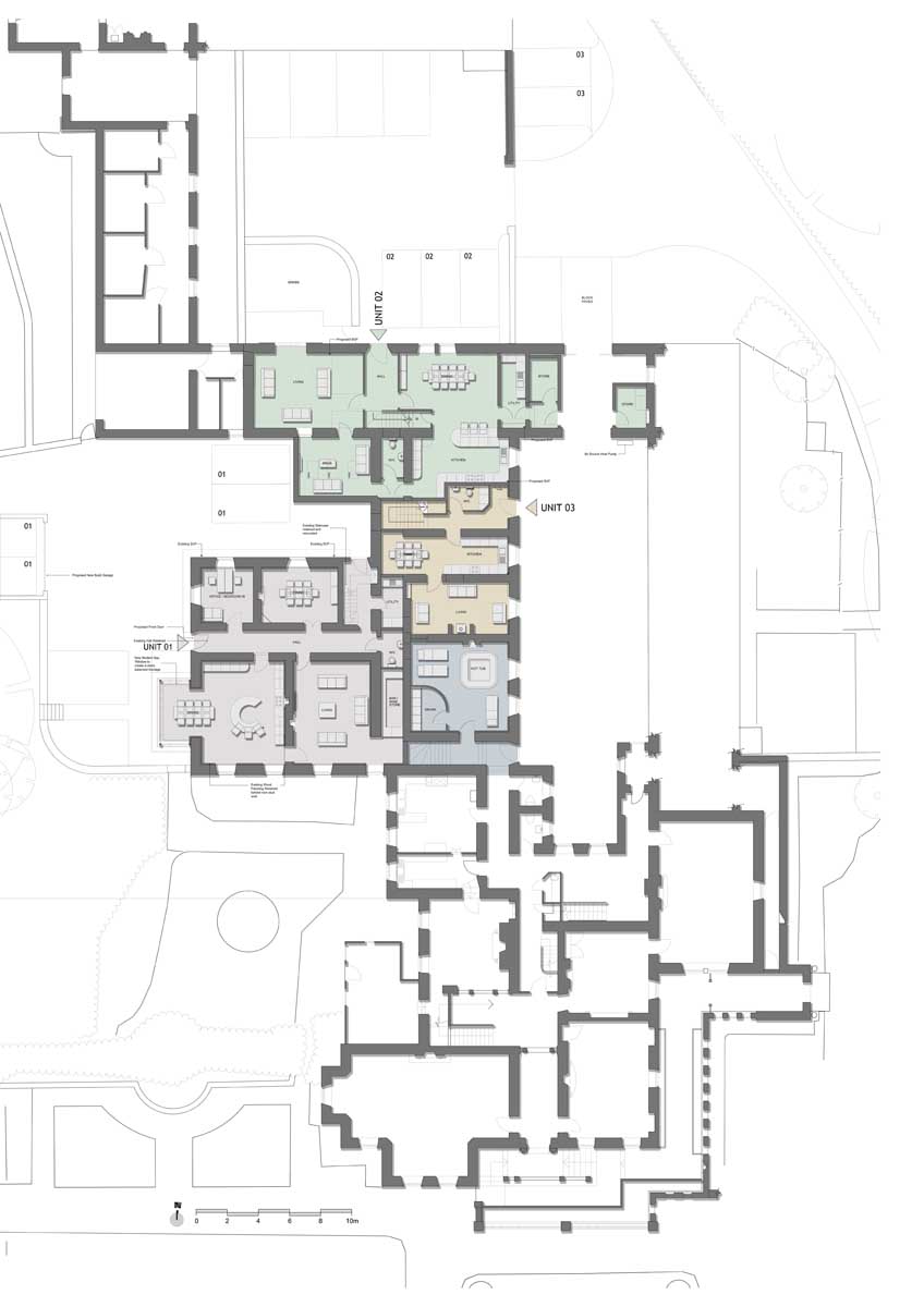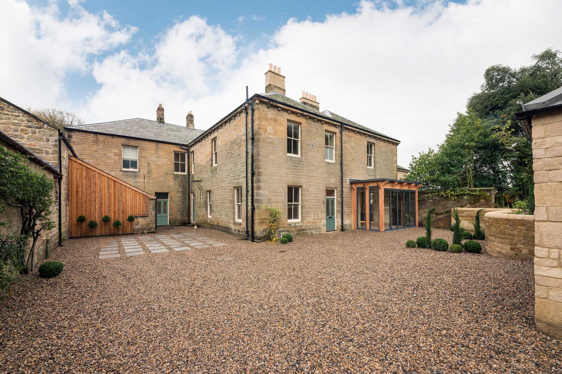 Conversion of a Grade II listed building to create a 5 bedroom family home retaining original features and the addition of new modern interventions. Originally built as the servants quarters and nursery to Newton Hall, the West Wing had been divided into flats at first floor and unoccupied at ground floor. Pod were commissioned to reconfigure the disparate elements to create a one off family home. Working closely with Northumberland County Council's Conservation Officer, a sensitive design approach helped retain existing features and character. Creating a new “front” to the house was a key challenge with the new drive approaching what was historically the rear of the main house. A new front door and large modern glazed garden room animate the façade and provide aspect over the gardens and woodland. This overtly modern intervention was welcomed by the council and has helped create a unique home.