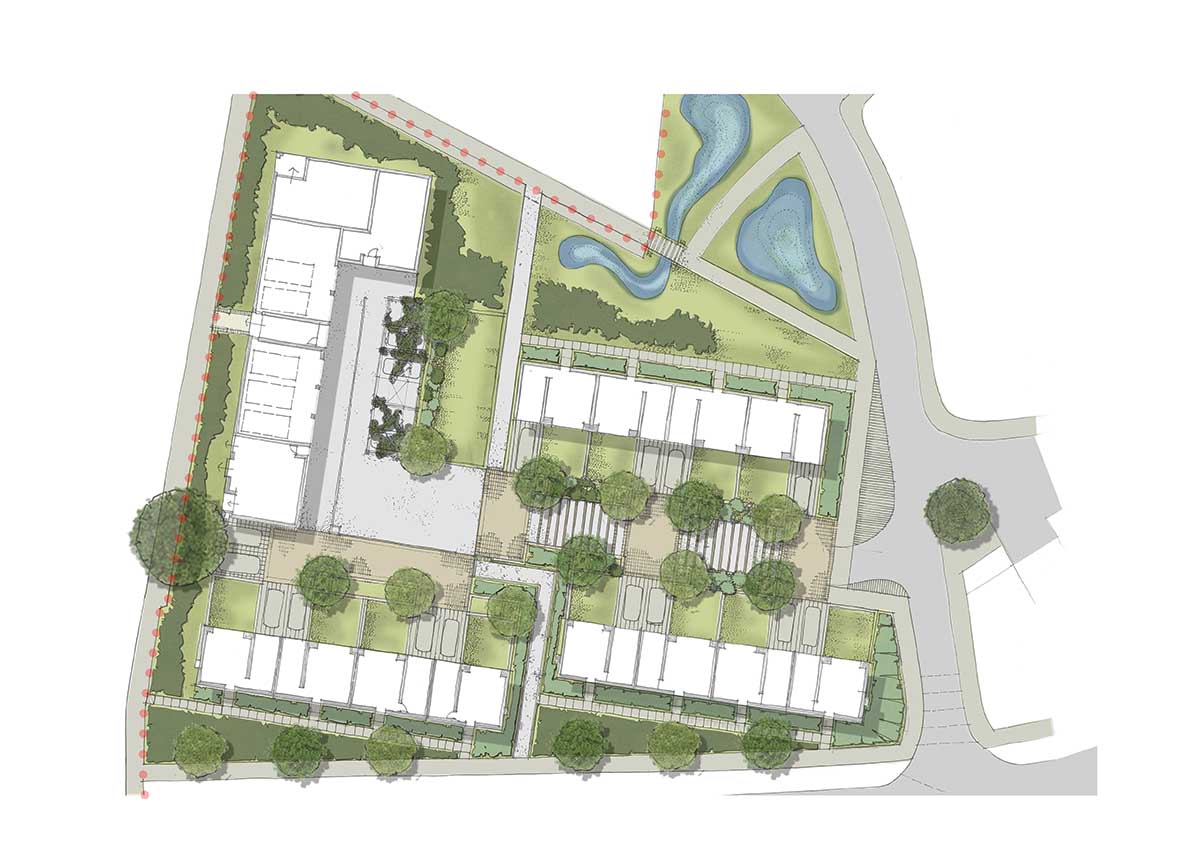 After a successful competition bid, POD worked closely with the consortium to understand and examine all site constraints, such as large extensive mine workings, which helped form the basis of the development, navigating through these whilst driving the concept of connectivity to the large open areas of surrounding green space, POD have been able to create an exciting development with key transitional nodes of external spaces, offering spaces for the residents to come together a build a new community. The house types have been designed and considered as a rhythmical composition that drives community connection, expansive areas of glazing allowing transparency and promoting visual connections. As part of a strong delivery team POD will move forward and deliver this existing project on behalf of the GRP consortium.